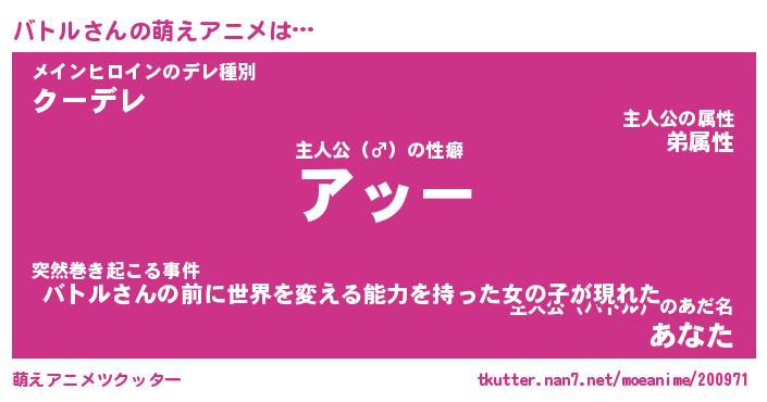 | 男性向けラノベタイトル風あだ名 | 『バトルアートオンライン』 |