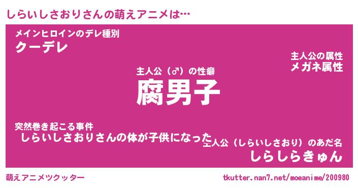 | 男性向けラノベタイトル風あだ名 | 『シライシサオリアートオンライン』 |