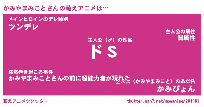 | 男性向けラノベタイトル風あだ名 | 『かみやまみことの憂鬱』 |