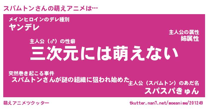 | 男性向けラノベタイトル風あだ名 | 『スパムトンアートオンライン』 |