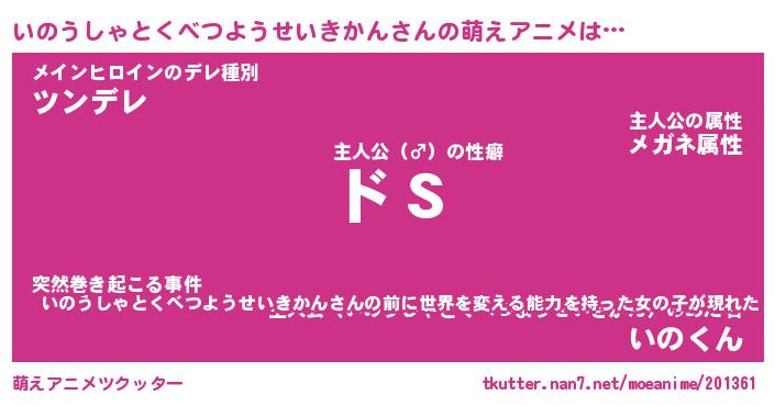 | 男性向けラノベタイトル風あだ名 | 『いのうしゃとくべつようせいきかんの憂鬱』 |