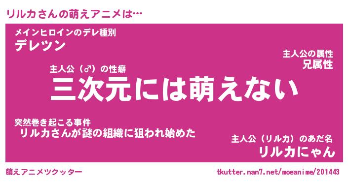 | 意味不明あだ名 | 『ペロリンリルカ』『リルカフォーエバー』 |