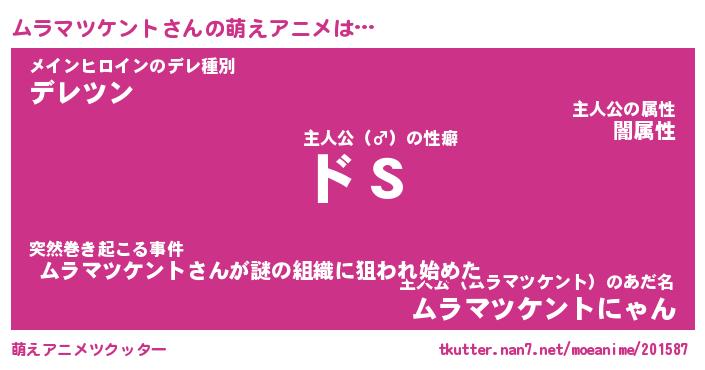| 男性向けラノベタイトル風あだ名 | 『ムラマツケントの憂鬱』 |