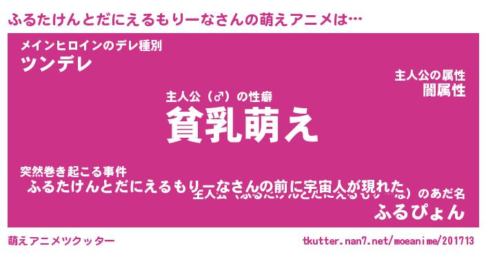 | 男性向けラノベタイトル風あだ名 | 『ふるたけんとだにえるもりーなの憂鬱』 |