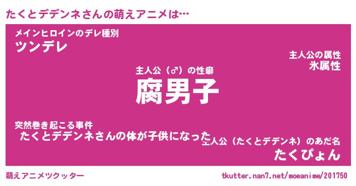 | 男性向けラノベタイトル風あだ名 | 『タクトデデンネアートオンライン』 |