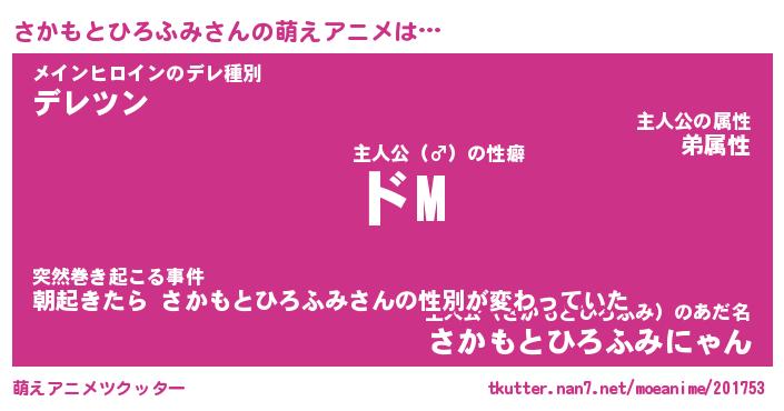 | 女子向けラノベタイトル風あだ名 | 『(仮)さかもとひろふみのやんごとなき事情』 |