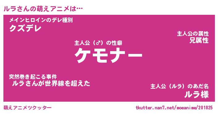 | 男性向けラノベタイトル風あだ名 | 『ルラアートオンライン』 |
