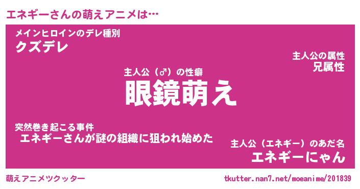 | 男性向けラノベタイトル風あだ名 | 『エネギーの憂鬱』 |