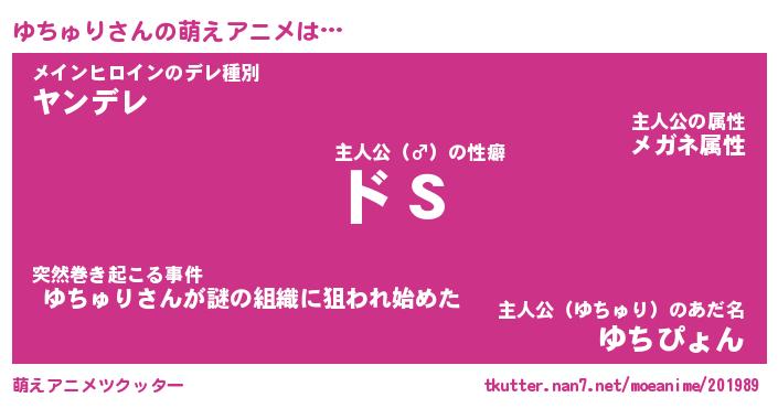 | 男性向けラノベタイトル風あだ名 | 『ゆちゅりの憂鬱』 |