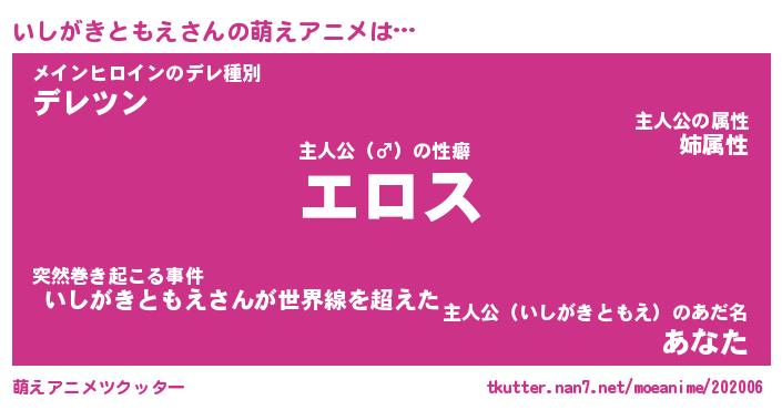 | 女子向けラノベタイトル風あだ名 | 『誰かこのいしがきともえを説明してください! ~契約から始まるウェディング~』 |