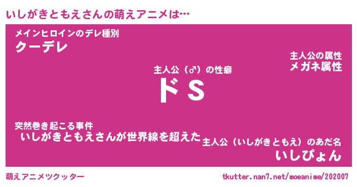| 男性向けラノベタイトル風あだ名 | 『いしがきともえの憂鬱』 |