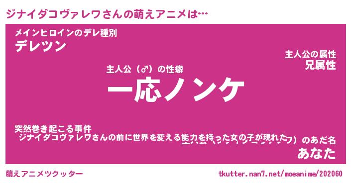 | 男性向けラノベタイトル風あだ名 | 『ジナイダコヴァレワアートオンライン』 |