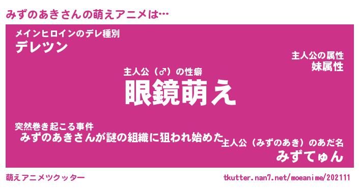 | 男性向けラノベタイトル風あだ名 | 『みずのあきの憂鬱』 |
