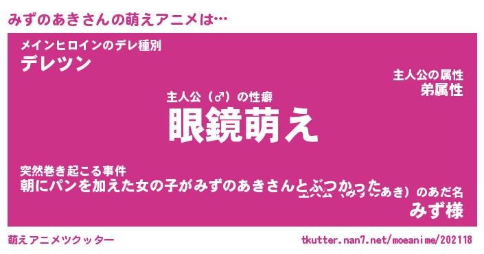 | 男性向けラノベタイトル風あだ名 | 『みずのあきの憂鬱』 |