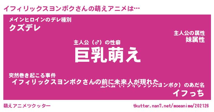 | 男性向けラノベタイトル風あだ名 | 『イフィリックスヨンボクの憂鬱』 |