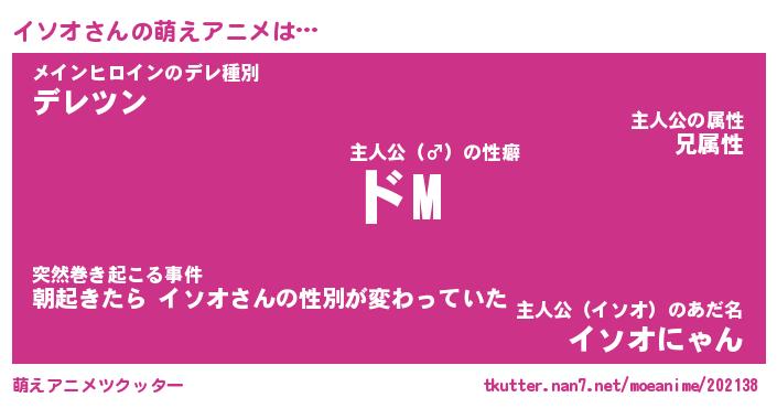 | 女子向けラノベタイトル風あだ名 | 『(仮)イソオのやんごとなき事情』 |