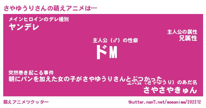 | ファンタジー風あだ名 | 『サヤフェル』『エターナルサヤユウリー』 |