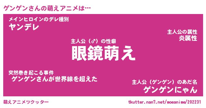 | ファンタジー風あだ名 | 『ゲンフェル』『エターナルゲンゲンー』 |