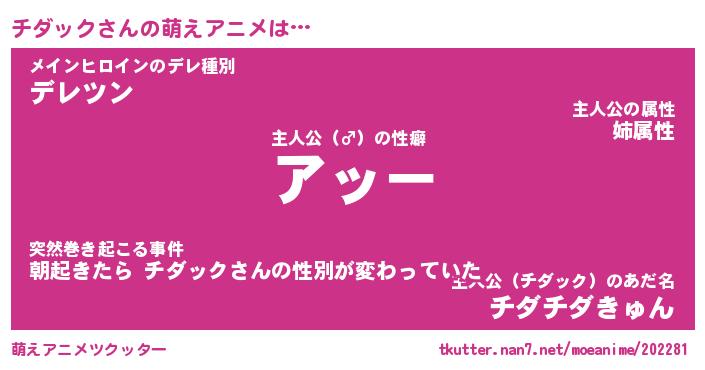 | 男性向けラノベタイトル風あだ名 | 『チダックアートオンライン』 |