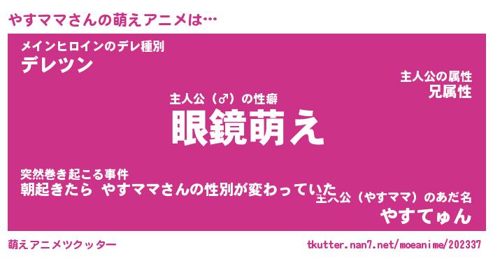 | 男性向けラノベタイトル風あだ名 | 『やすママの憂鬱』 |