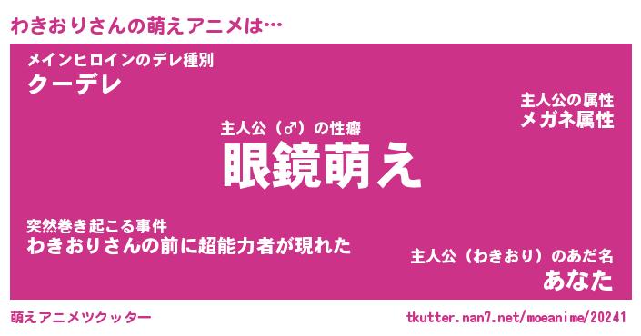 | 男性向けラノベタイトル風あだ名 | 『わきおりの憂鬱』 |
