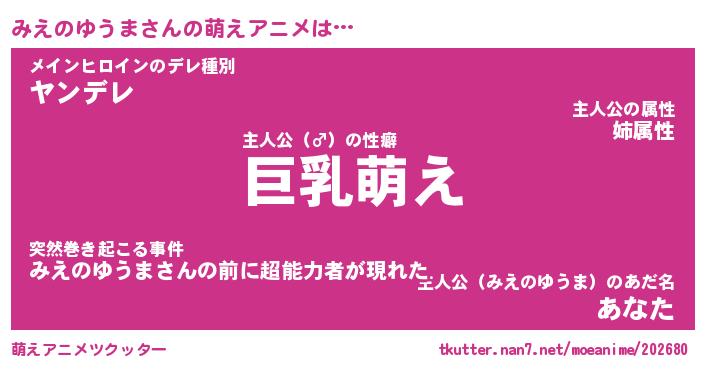| 男性向けラノベタイトル風あだ名 | 『みえのゆうまの憂鬱』 |