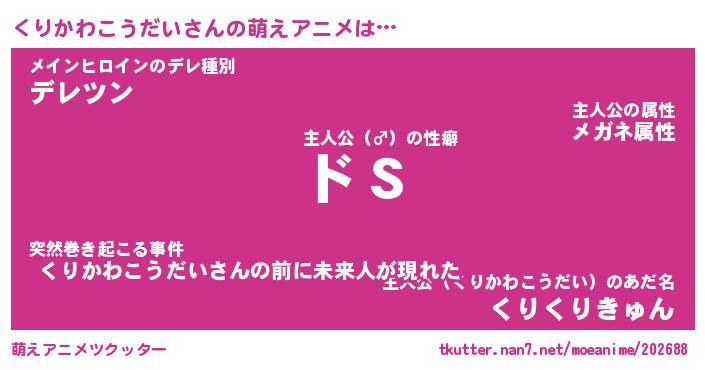 | 女子向けラノベタイトル風あだ名 | 『(仮)くりかわこうだいのやんごとなき事情』 |