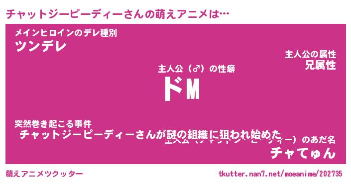 | 女子向けラノベタイトル風あだ名 | 『(仮)チャットジーピーディーのやんごとなき事情』 |