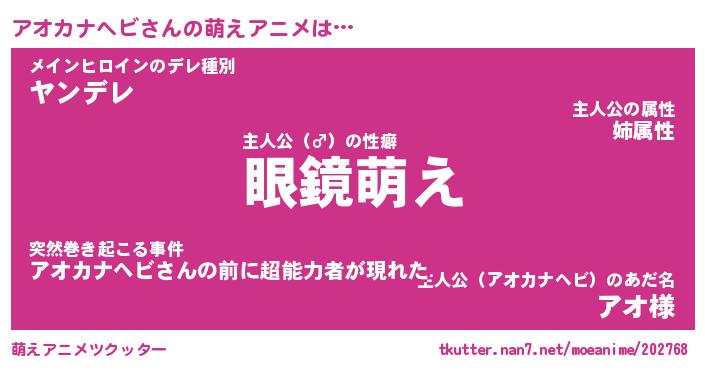 | 胡散臭い通販商品みたいなあだ名 | 『モテモテ間違いなし水晶球…その名も「アオカナヘビ」』 |