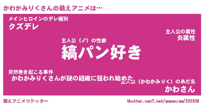 | 胡散臭い通販商品みたいなあだ名 | 『必ず成功する霊験あらたかなお札…その名も「かわかみりく」』 |
