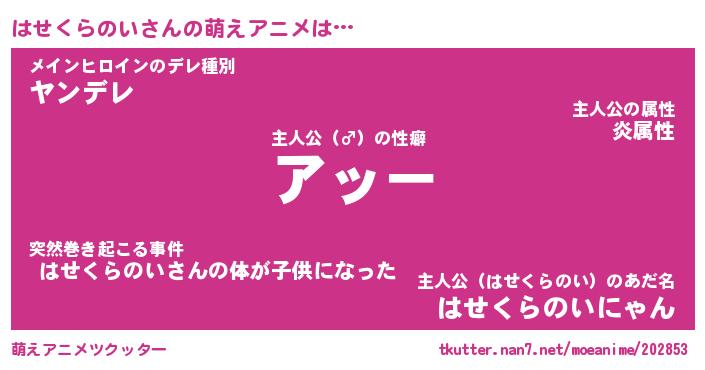 | 女子向けラノベタイトル風あだ名 | 『誰かこのはせくらのいを説明してください! ~契約から始まるウェディング~』 |