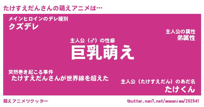 | 男性向けラノベタイトル風あだ名 | 『たけすえだんの憂鬱』 |