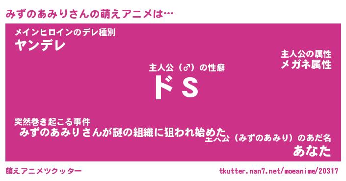 | 男性向けラノベタイトル風あだ名 | 『みずのあみりの憂鬱』 |