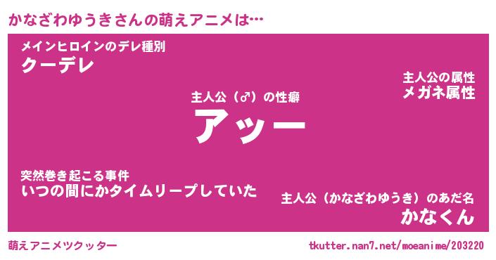 | 男性向けラノベタイトル風あだ名 | 『カナザワユウキアートオンライン』 |