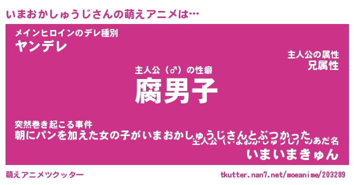 | ポケモン風あだ名 | 『イマチュウ』『イマオダネ』 |