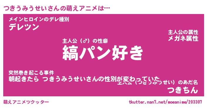 | 女子向けラノベタイトル風あだ名 | 『(仮)つきうみうせいのやんごとなき事情』 |