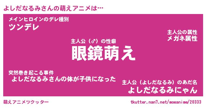 | 男性向けラノベタイトル風あだ名 | 『よしだなるみの憂鬱』 |