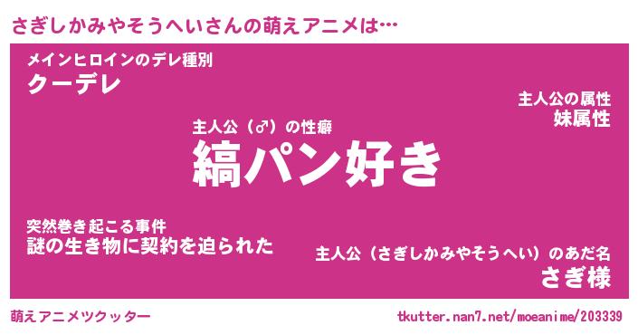 | 肩書あだ名 | 『さぎしかみやそうへい御曹司』 |