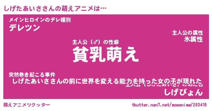 | 男性向けラノベタイトル風あだ名 | 『しげたあいさの憂鬱』 |