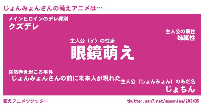 | 男性向けラノベタイトル風あだ名 | 『じょんみょんの憂鬱』 |