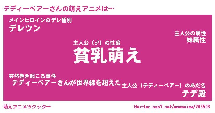 | 男性向けラノベタイトル風あだ名 | 『テディーベアーの憂鬱』 |