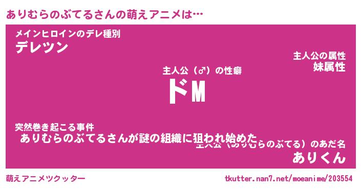 | 男性向けラノベタイトル風あだ名 | 『ありむらのぶてるの憂鬱』 |