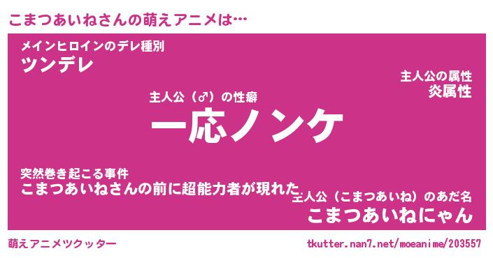 | 男性向けラノベタイトル風あだ名 | 『コマツアイネアートオンライン』 |