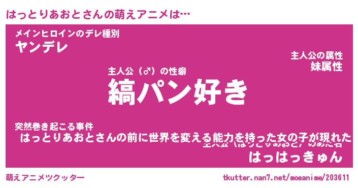 | 女子向けラノベタイトル風あだ名 | 『(仮)はっとりあおとのやんごとなき事情』 |