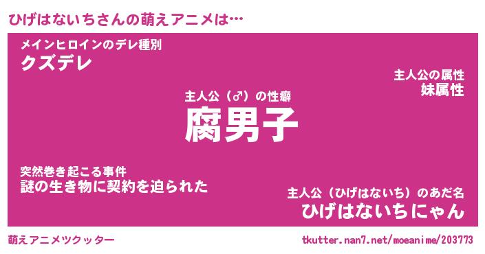 | 男性向けラノベタイトル風あだ名 | 『ヒゲハナイチアートオンライン』 |