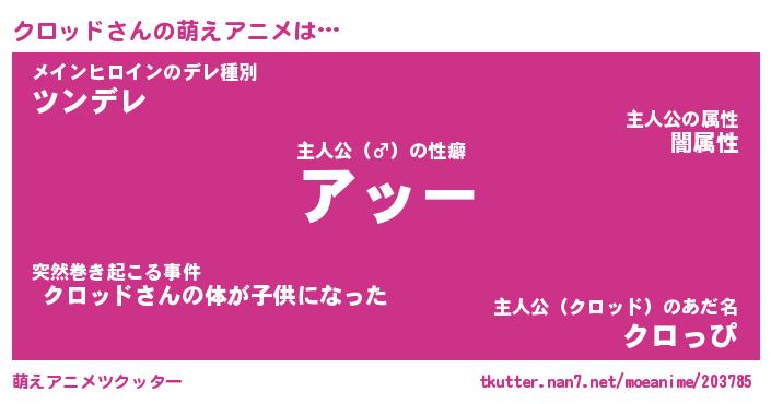 | 女子向けラノベタイトル風あだ名 | 『誰かこのクロッドを説明してください! ~契約から始まるウェディング~』 |