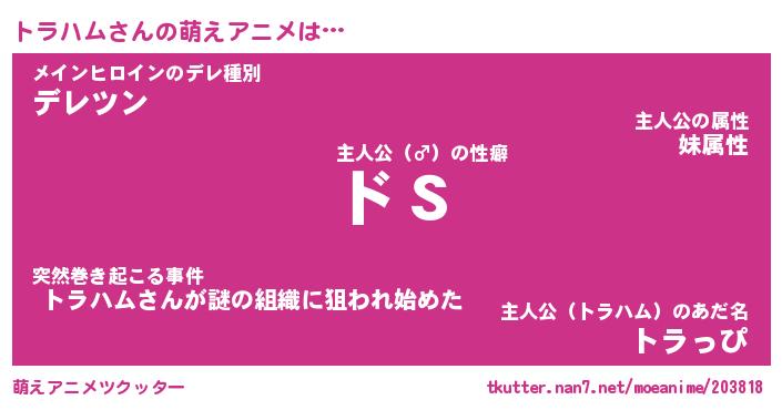 | 男性向けラノベタイトル風あだ名 | 『トラハムの憂鬱』 |