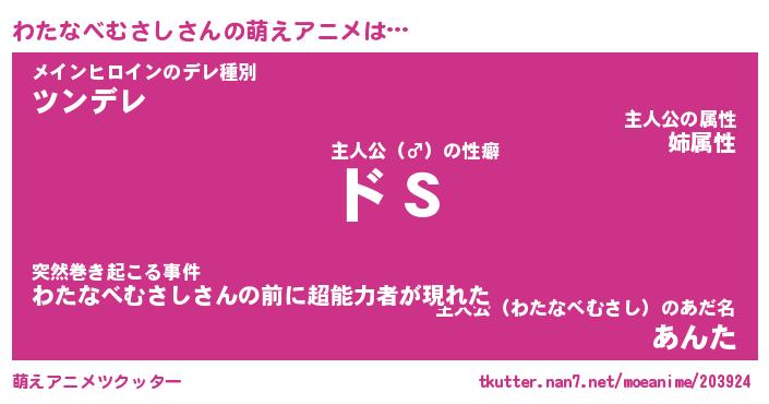 | 男性向けラノベタイトル風あだ名 | 『わたなべむさしの憂鬱』 |