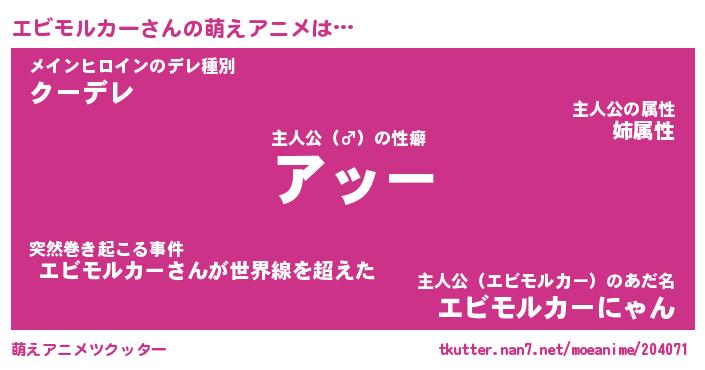 | 男性向けラノベタイトル風あだ名 | 『エビモルカーアートオンライン』 |