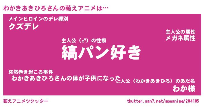 | 男性向けラノベタイトル風あだ名 | 『わかきあきひろの憂鬱』 |